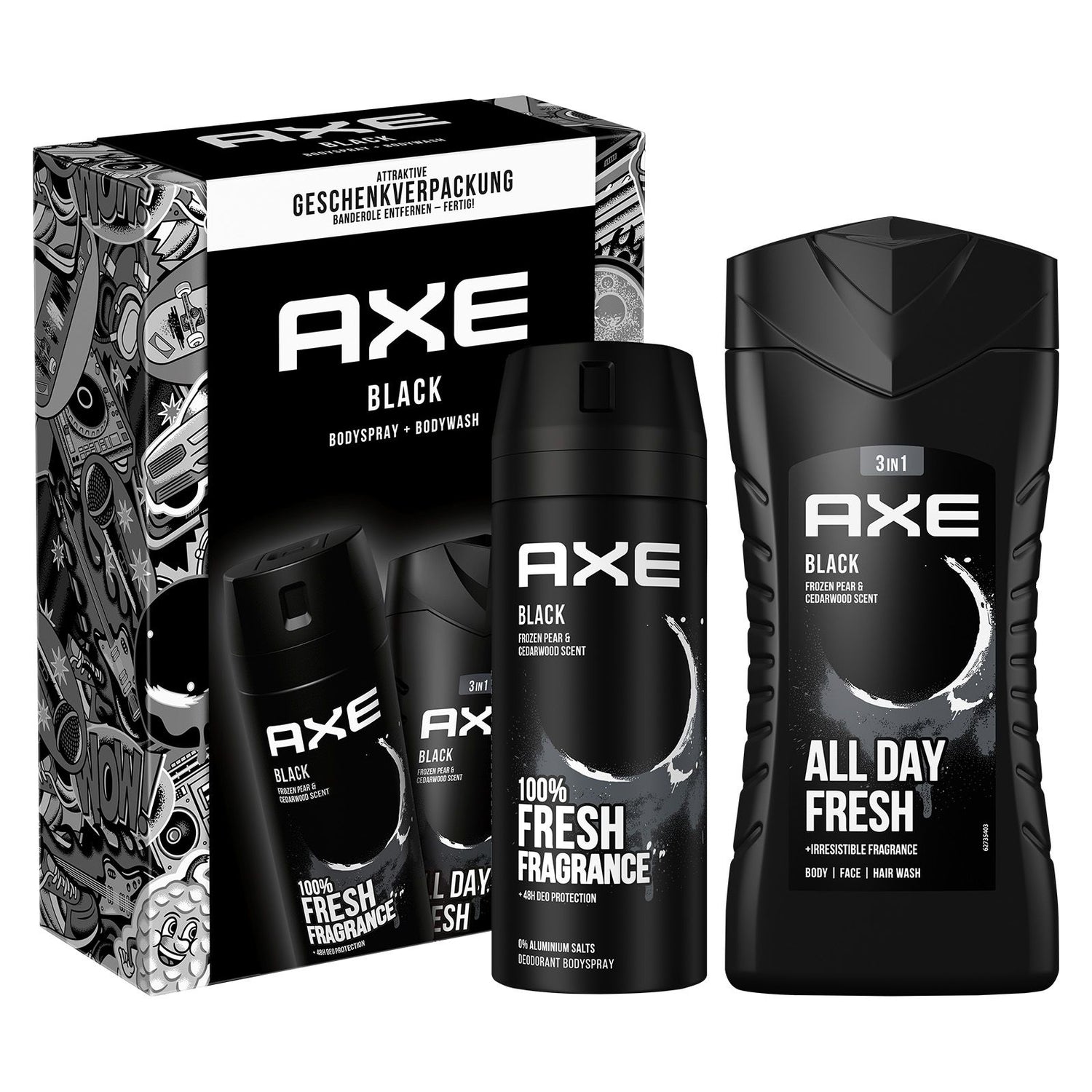 - Das AXE Geschenkset Black enthält das Bodyspray und das passende Bodywash für die tägliche Körperpflege.