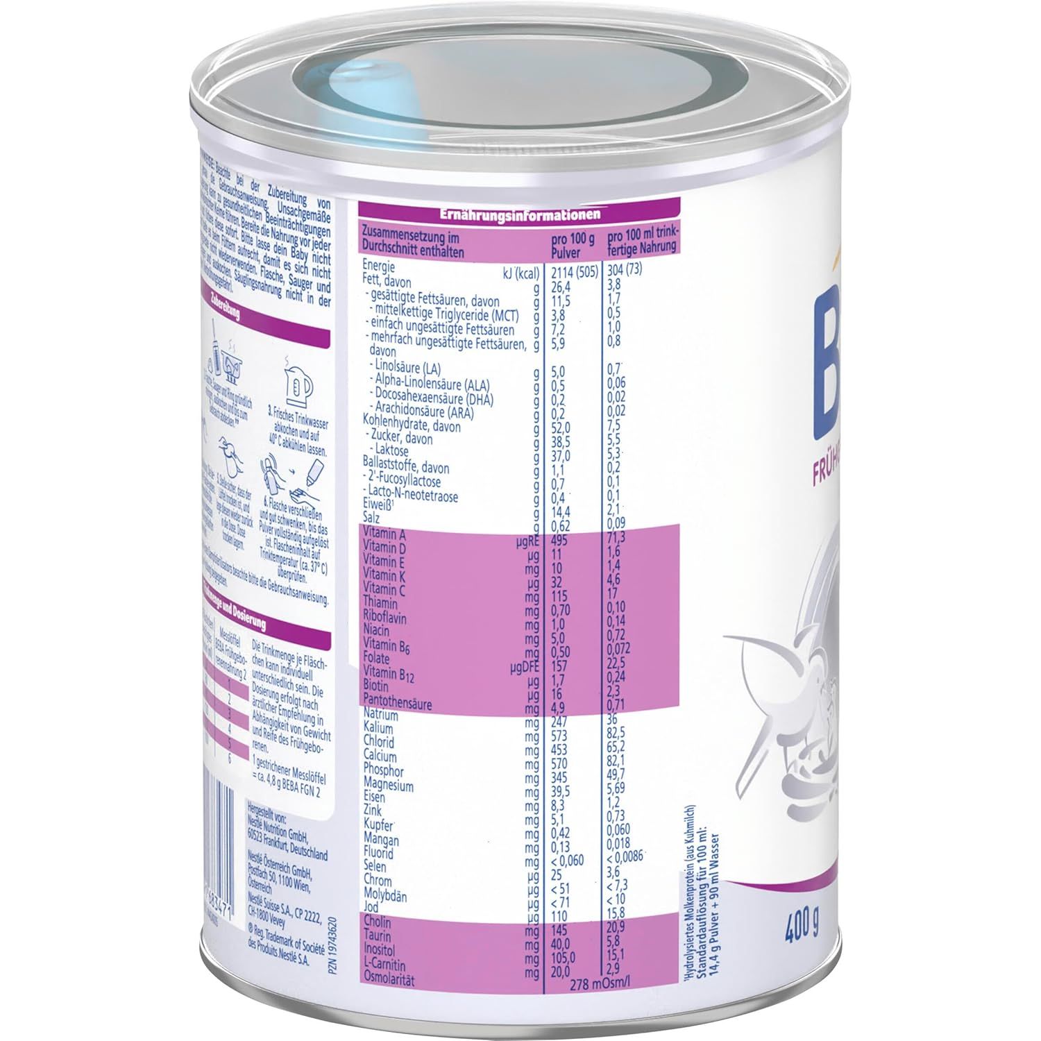 Stillen ist die beste Ernährung für dein Baby, daher sollte so lange wie möglich gestillt werden. Unter Umständen ist angereicherte Muttermilch die beste Ernährung für deinen frühgeborenen Säugling. Bitte lasse dich von deinem Kinderarzt oder deiner Klinik beraten, wenn du eine Säuglnigsnahrung verwenden willst. BEBA Frühgeborenennahrung Stufe 2 ist zur ausschließlichen Ernährung bestimmt für frühgeborene Säuglinge mit einem Gewicht von 1800 g bis ca. 4000 g. Bitte nur unter ärztlicher Aufsicht verwenden. Nicht zur parenteralen Ernährung geeignet. Bitte nicht verwenden bei diagnostizierter Kuhmilcheiweiß-Allergie, Laktose-Intolleranz und kognitalen Stoffwechselerkrankungen wie Galaktosämie/ Glukose-Glaktose-Malabsorption.