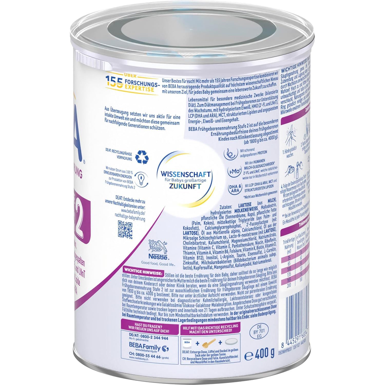 Unser Bestes für euch! Mit mehr als 155 Jahren Forschungsexpertise kombinieren wir von BEBA herausragende Produktqualität auf höchstem wissenschaftlichen Niveau mit dem Ziel, für jedes Baby eine lebenswerte Zukunft zu schaffen. BEBA Frühgeborenennahrung 2 ist auf die besonderen Ernährungsbedürfnisse deines frühgeborenen Babys nach Klinikentlassung abgestimmt.