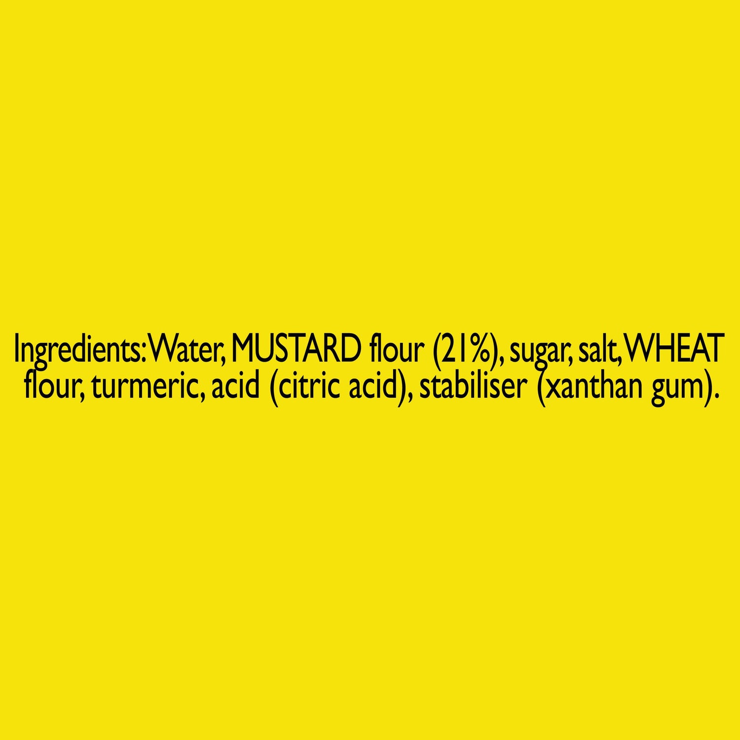 Wasser, Senfmehl (21 %), Zucker, Salz, Weizenmehl, Kurkuma, Zitronensäure