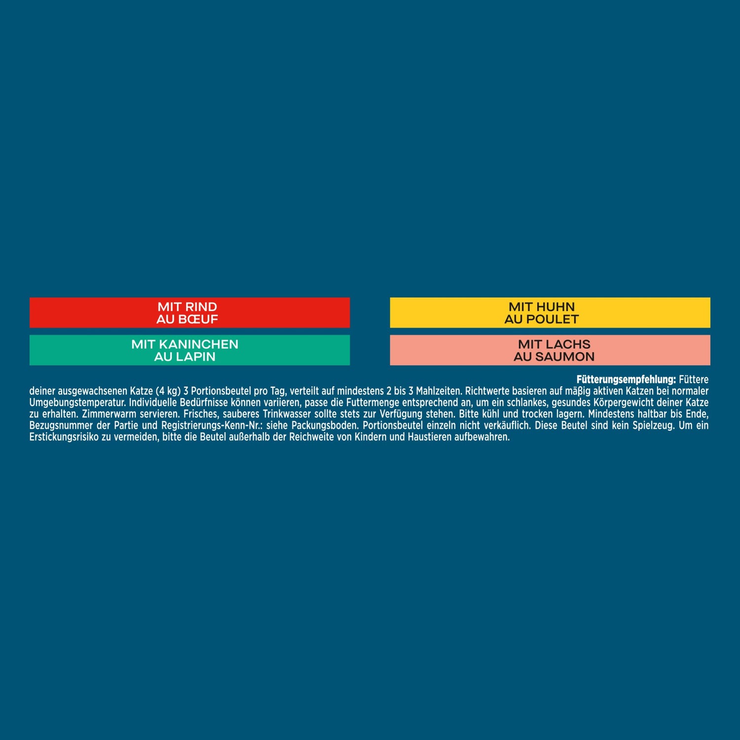 - Der Multipack Katzenfutter Mix enthält folgende Sorten: Mit Rind, Mit Huhn, Mit Kaninchen, Mit Lachs