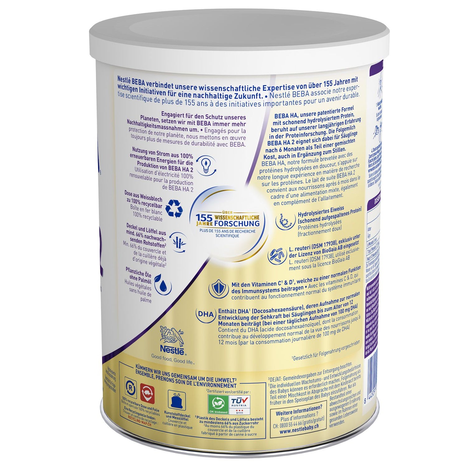 Stillen ist ideal für Ihr Kind. Lassen Sie sich vom Fachpersonal des Gesundheitswesens beraten, wenn Sie dieses Produkt verwenden wollen. Säuglingsanfangsnahrung enthalten Kohlenhydrate. Häufiger oder dauernder Kontakt der Zähne mit kohlenhydrathaltigen Nahrungen kann Zahnzerstörungen durch Karies verursachen. Überlassen Sie Ihrem Kind die Flasche nicht zum Dauernuckeln. Bei einer bestehden Kuhmilch-Eiweiss-Allergie oder dem Verdacht auf eine solche darf BEBA EXPERT HA 2 nicht gegeben werden.